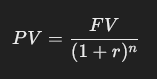 The formula for present value is: