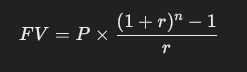 *The subtraction of 1 in the formula (1+r)n−1 accounts for the geometric progression of the compounding effect of each individual payment. It ensures that the future value accurately reflects the sum of all the payments compounded at the given interest rate over the specified period. Without subtracting 1, the formula would not correctly calculate the series sum, leading to an incorrect future value.