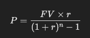 The formula to calculate the annual savings (PP) needed to achieve a future value (FV) is: